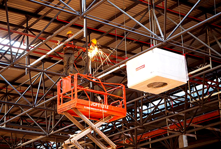 全新優(yōu)化設(shè)計的康平高大空間空調(diào)模塊機組應(yīng)用大興機場磁各莊地鐵車輛段,了解更多